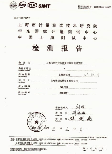 08年8月份,上海市特種設備監督檢驗技術研究院在經過眾多篩選后最終選擇林頻,與我司正式簽約一臺型號為QL-100的臭氧老化試驗箱,在出廠前嚴格把關,并已通過上海計量院第三方檢測合格,現已驗收合格并已成功交付使用.因為我們專業,所以值得信賴! 林頻全體人員歡迎您的咨詢!TEL:024-83503936 31314378 http://www.4770744.com